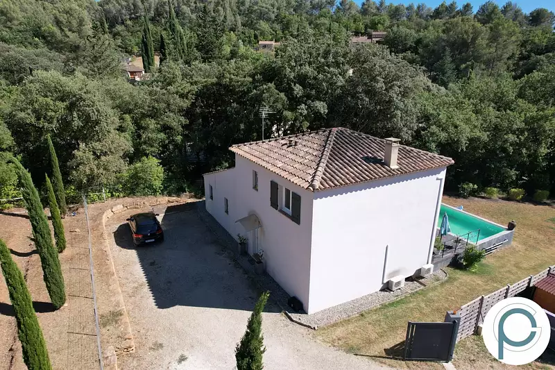 Le Beausset / Les Folies - Au calme et en pleine nature, sur un terrain sécurisé et clos de 825m² avec jardin entretenu, Villa moderne, non mitoyenne de Type 5 (4 chambres), d'une surface totale de 125m² composée d'une pièce principale de 52m² avec cuisine équipée ouverte sur l’espace salon / salle à manger éclairé par deux baies vitrées donnant sur la terrasse bois et la piscine le tout orienté sud/ouest et baignant dans la lumière. Au même niveau, une grande chambre parentales de 19m² et une buanderie.
