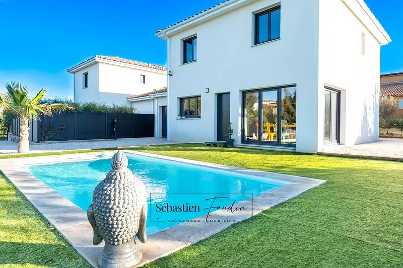 Vous apprécierez particulièrement son grand séjour ouvert sur sa cuisine entièrement équipée et aux matériaux de qualité, sa piscine à la vue dégagée et le confort d'une maison neuve.