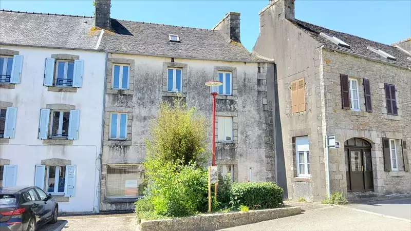Au centre bourg de Plounéour MenezUne maison en pierres sous ardoises à rénover, ayant:Au rez-de-chaussée: cuisine, séjour, wc, rangementsAu premier étage: palier, deux chambres, salle de bains avec wcAu deuxième étage: palier, deux chambres, salle d'eau avec wcGrenier au dessusCour et jardin à l'arrière, remise en pierre