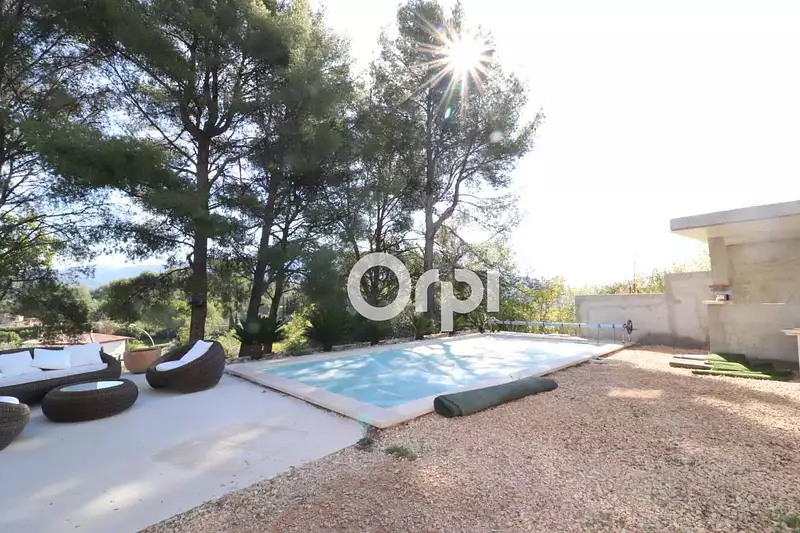 LASCOURS, villa de type 3/4 de 125 m² en R+1 avec 1700 M² de terrain boisé orienté sud ouest, avec piscine et abri voiture.