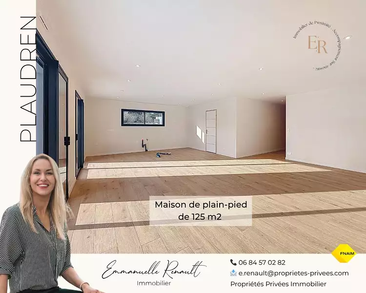 EN EXCLUSIVITÉ ! Emmanuelle RENAULT Propriétés Privées Immobilier vous présente « L'Essentielle », une maison contemporaine de PLAIN-PIED, spacieuse et lumineuse de 2025 (en cours d'achèvement), sous garantie décennale jusqu'en 2035. Elle est située dans un environnement paisible sur la commune de Plaudren, à deux minutes à pied du bourg. Elle a été pensée pour conjuguer confort, qualité de vie et performance énergétique.