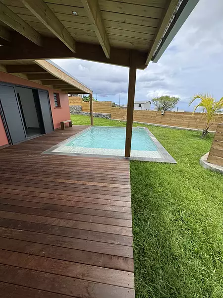 L'agence IDSP vous popose une villa contemporaine neuve aux prestations haut de gamme, idéalement située sur les bas de la Plaine Saint-Paul, à seulement 3 minutes de la voie rapide. Édifiée sur une parcelle de 400 m2, cette propriété séduit par son architecture moderne, ses finitions haut de gamme et sa vue dégagée sur l’océan. Caractéristiques principales : villa neuve construction récente avec matériaux et finitions de qualité, pièce de vie spacieuse et lumineuse ouverte sur la terrasse et la piscine, cuisine moderne entièrement équipée, 3 chambres confortables dont une suite parentale, deux salle d’eau élégante avec équipements premium, piscine en pierre naturelle, véritable espace de détente, jardin gazonné et paysager parfaitement entretenu, garage fermé et 2 places de stationnement extérieures, environnement calme, résidentiel et proche de toutes commodités. Cette villa allie confort, esthétisme et fonctionnalité, offrant un cadre de vie rare entre mer et nature, à proximité immédiate des axes principaux.