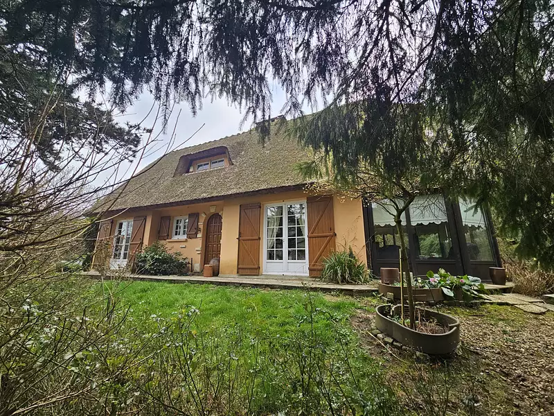 Belle Chaumière de 1955 édifiée sur une parcelle de 1000 m2 et comprenant au rez-cde-chaussée, une entrée, un séjour/salon avec cheminée donnant sur une véranda, une cuisine aménagée et équipée, 2 chambres dont une avec sa salle de douches, et un WC.