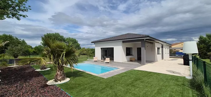 Les menuiseries sont en PVC double vitrage, oscillo-battantes dans l'ensemble de la maison. À l'extérieur, vous profiterez d'une piscine coque avec filtration au sel.