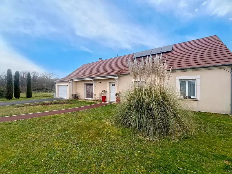 REF 40081: À Vendre - Pavillon de Plain-Pied - Sans les Contraintes de la Construction ! Évitez les aléas de la construction (coût, délais…) et emménagez sans attendre dans ce magnifique pavillon de plain-pied, offrant un cadre de vie idéal. Vous serez séduit par son grand espace de vie lumineux, comprenant une cuisine ouverte sur la salle à manger, parfaite pour des moments conviviaux en famille ou entre amis. Le salon spacieux complète cet espace chaleureux et accueillant. Depuis la cuisine, vous accédez directement à un espace buanderie pratique et fonctionnel, idéal pour faciliter votre quotidien. La maison dispose de trois chambres, d'une salle de bains et d'un WC séparé. Un grenier aménageable offre un potentiel d'agrandissement pour s'adapter à vos besoins (chambres supplémentaires, bureau, salle de jeux…). Côté équipements, elle est chauffée grâce à une cheminée avec insert, des radiateurs électriques et un poêle à granulés récent (installé il y a 2 ans). Son installation photovoltaïque sous garantie permet de réduire considérablement la facture énergétique et de générer un revenu grâce à la revente du surplus à EDF. À l'extérieur, profitez d'un terrain plat de 2000 m² avec verger et jardin, ainsi que d'une grande terrasse couverte par une pergola offrant une vue dégagée. Pour votre confort, la maison est équipée de deux garages (l'un attenant, l'autre accessible depuis la rue) et est raccordée au tout-à-l'égout ainsi qu'à la fibre optique. Ne manquez pas cette opportunité d'emménager dans une maison clé en main, sans les tracas d'un chantier ! Contactez-nous dès maintenant pour une visite.