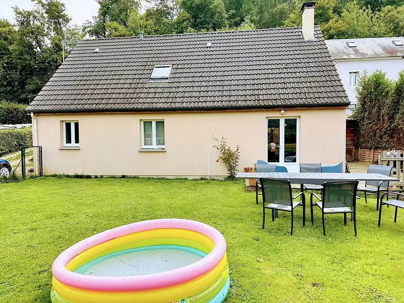 Maison 5 Mn de VASCOEUIL 7 pièce(s) 125 m2 Charmante maison TRADITITIONNELLE alliant authenticité et confort moderne, située dans un environnement paisible et verdoyant. Grande pièce de vie de 60 m² avec cuisine ouverte, cheminée avec insert bois, Suite parentale au rez-de-chaussée : chambre, salle d'eau, WC, coin dressing. A l'étage: 3 chambres, une salle de bains, et WC indépendants. Terrain clos de 800 m², exposé plein sud, avec une vue dégagée sur les prés et la rivière. Idéal pour une résidence principale ou maison secondaire Environnement calme, sans vis-à-vis Maison alliant charme de l'ancien et confort contemporain