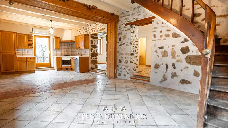 Votre agence locale et familiale Perle du Semnoz Immobilier vous présente cette maison mitoyenne offrant un fort potentiel grâce à ses nombreuses annexes permettant divers aménagements. Située sur la commune d'Allèves, cette maison de 126 m2 habitables est agencée de la manière suivante :