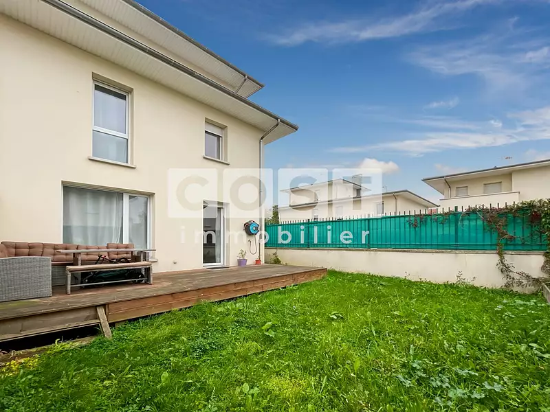 Située parfaitement au calme dans un quartier pavillonnaire, cette maison récente agencée sans aucune perte de place se compose au rez-de-chaussée d'un séjour donnant sur le jardin avec terrasse, idéal pour des moments de convivialités, d'une grande cuisine dinatoire ainsi qu'un wc indépendant.