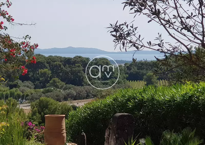 Cette maison située sur les hauteurs de Costebelle offre une surface de 126 m2, avec une architecture intérieure de style tropézien, pleine de charme et très chaleureuse. Elle dispose de 3 chambres, dont une suite parentale, et bénéficie d'une vue imprenable sur la mer et la campagne.