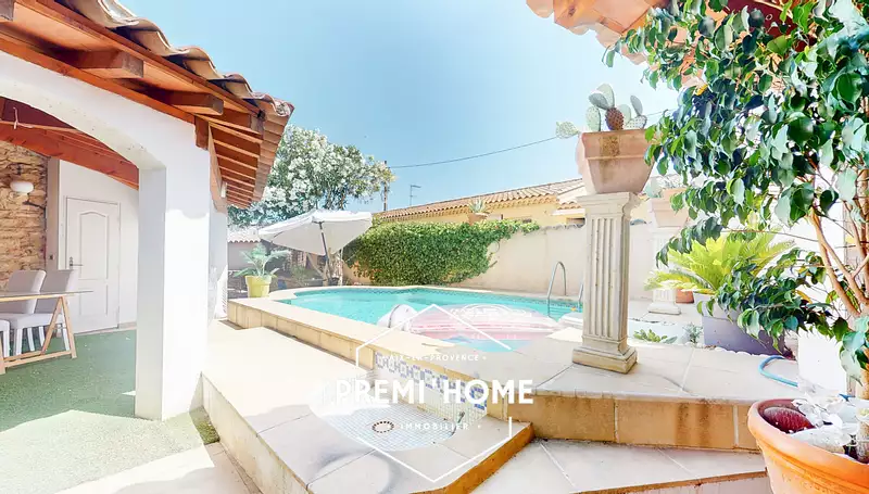 PREMi'HOME vous propose cette maison sur deux niveaux, avec studio indépendant, piscine terrasse couverte, sur un terrain d'env 380m2, au coeur de Miramas.