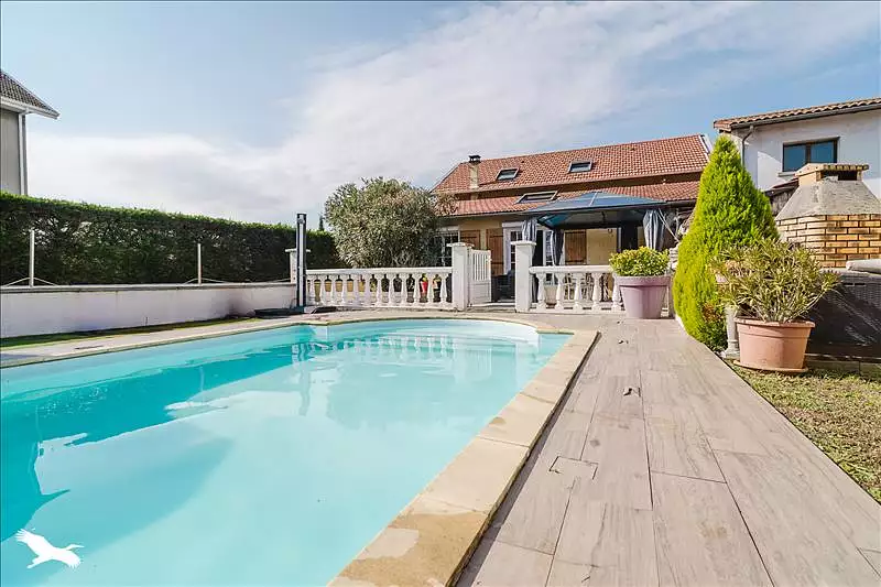 Dans un secteur résidentiel, proche des commodités, Maison individuelle composé d'un salon-séjour donnant sur le jardin avec terrasse et sur une piscine, trois chambres, une cuisine équipée et une salle d'eau. Un garage. Proposition d'aménagement virtuel non contractuelle en dernière photo.