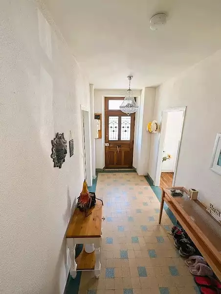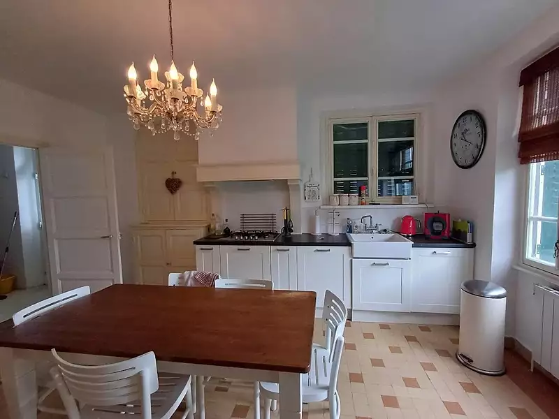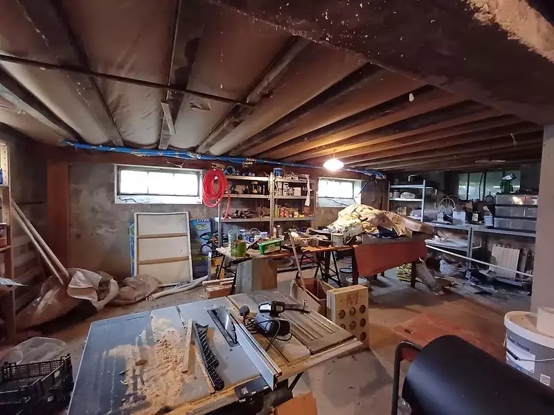 Il y a 10 ans, cette maison a été complètement modernisée à l'intérieur. L'électricité, l'approvisionnement en eau et les tuyaux d'évacuation et une fosse septique normalisée. En outre, un système de chauffage central a été renouvelé (mazout). La maison entière a un sous-sol (garage, atelier, chaudière). Au rez-de-chaussée il y a un hall d'entrée spacieux avec une toilette et des escaliers vers le premier étage. A gauche, un grand salon avec un poêle à bois et des portes-fenêtres donnant sur le balcon/terrasse. A droite, la cuisine (résidentielle), entièrement équipée et derrière elle, l'arrière-cuisine avec le branchement pour une machine à laver, une porte vers le jardin et une porte vers le garage/la cave.