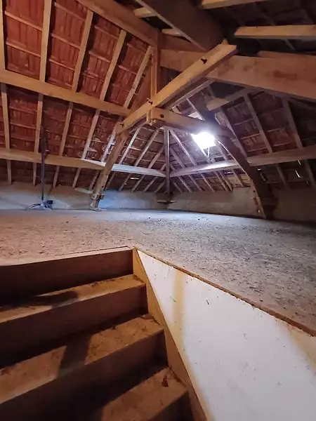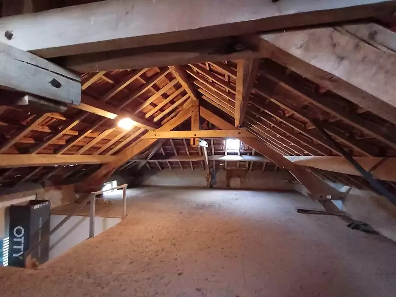 A l'étage se trouvent 4 chambres spacieuses et une salle de bain avec lavabo, douche et WC. Au-dessus se trouve un autre grand grenier.