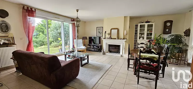 iad France - Sophie SCONTRINO vous propose: Rare sur le secteur ! A proximité de la forêt, dans un quartier pavillonnaire calme et prisé, belle maison à l'intérieur soigné, construction de 2007 proposant en rdc : Grande entrée avec placards, cuisine équipée et aménagée de qualité avec possibilité d'ouverture sur le séjour double avec cheminée insert, proposant deux accès au jardin et à la terrasse, wc.