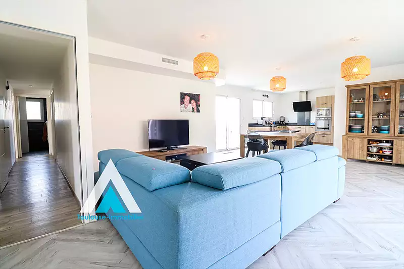 A découvrir en Exclusivité avec l'Agence Toulouse Immobilier! RARE SUR SECTEUR ! Secteur Castelginest proche Bruguières. Idéalement située dans un lotissement récent et proche des commodités. Venez découvrir cette maison T5 de plain-pied de 127 m2 de 2017. Présentant de beaux volumes, un grand garage, un grand jardin et qui se dote d'une performance énergétique remarquable (A), avec la présence de panneaux solaires permettant de revendre de l'électricité. La maison se compose de: - Une entrée avec rangements - Un WC séparé - Une vaste pièce de vie de 50 m2 lumineuse traversante comprenant un espace salon, salle à manger, avec une cuisine ouverte entièrement équipée. Le tout donnant sur les terrasses et le jardin - Un cellier - Un bureau de 10 m2 - Deux chambres de plus de 12 m2 avec placards - Une grande salle de bain avec baignoire et double vasque - Un WC indépendant - Une grande suite parentale, avec chambre, salle d'eau et dressing En plus de bien vous profiterez de: - Maison très récente disposant de belles prestations - Claire, lumineuse et calme - Beaux volumes - Multiples expositions - Double vitrage et volets roulants électriques - Pompe à chaleur air/air avec système de chauffage et refroidissement en gainable - Logement extrêmement performant en matière énergétique (A) - Jardin d'environ 350 m2 - Grande terrasse à l'arrière de la maison - Maison indépendante non mitoyenne - Grand garage d'environ 45 m2 accessible depuis la maison - Stationnement aérien en sus - Pas de travaux à prévoir - Panneaux solaires avec contrat de revente d'électricité transférable au nouveau propriétaire (revente d'environ 2500 euros/an sur encore 10 ans) Montant de la taxe foncière 2041 euros Montant estimé des dépenses annuelles d'énergie pour un usage standard : entre 660 euros et 960 euros par an. Le bien est vendu libre de toute occupation. Les Informations sur les risques auxquels ce bien est exposé sont disponibles sur le site Géorisques: www.georisques.gouv.fr N'hésitez pas à nous contacter pour plus d'informations, ou simplement programmer une visite ! ** L'Agence Toulouse Immobilier Spécialiste de vos projets immobiliers: Toulouse, Sept Deniers, Amidonniers, Ponts Jumeaux, Blagnac, Centre Ville, Carmes, St Étienne, Jardin de plantes, Capitole, Castelginest, Aucamville, Fonbeauzard, Launaguet, Grantentour, Bruguieres, Pechbonnieu, Saint Loup Cammas, L'Union, Fenouillet Arthur LASSON (EI) Agent Commercial - Numéro RSAC : 842 099 681 - TOULOUSE.