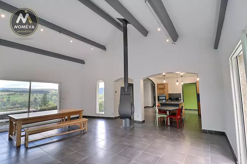 NOMÉVA Immobilier vous présente cette maison d'environ 127 m², située dans le village de Dunières, à proximité de tous les commerces et services. Au premier niveau de la partie habitation, vous profiterez d'une cuisine ouverte, d'un salon-séjour donnant sur deux terrasses extérieures, d'une buanderie, d'une salle de bains et de trois chambres. A l'étage, un dégagement pouvant servir de quatrième chambre, ainsi qu'une salle de jeux. Sous la partie habitation, vous disposerez d'un double garage d'environ 61 m² avec portails motorisés, d'un grand sous-sol, d'une salle d'eau, d'une salle de sport et d'une cave spacieuse. Fenêtres en double vitrage PVC, baies coulissantes en aluminium, volets roulants électriques et en bois, poêle à bois, chaudière fioul, piscine. La maison est raccordée au tout-à-l'égout. Visite virtuelle à votre disposition. Informations complémentaires et visites au 04 71 75 71 75 Référence de l'annonce : 281 Sous la responsabilité éditoriale de Nicolas SABY, agent commercial , immatriculé au RSAC sous le n° 953 410 834 du Puy-en-Velay pour le compte de la SAS NOMÉVA IMMOBILIER immatriculée au R.C.S du Puy-en-Velay sous le n°894 973 882 000 18, titulaire d'une carte professionnelle délivrée par la CCI de la Haute-Loire n° CPI 4302 2021 000 000 002.
