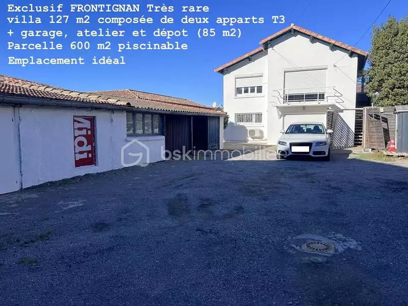 Villa traditionnelle, 4 faces, en R+1, composée de deux logements ( raccordements individuels TRES RARE ), sans vis-à-vis, sur une parcelle de 580 m2.