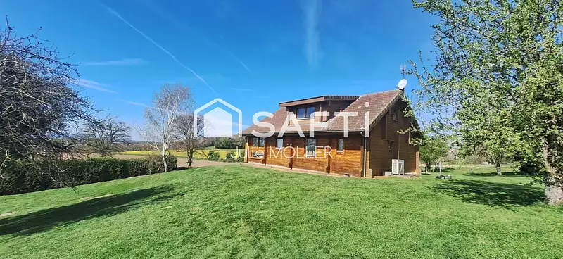 Située à Le Grand-Bourg, à seulement 15 minutes de Guéret, cette maison de type chalet finlandais, construite en 1997, séduit par son cadre paisible et son environnement verdoyant. Implantée sur un vaste terrain d’environ 3 700 m², clôturé et borné, elle offre une vue dégagée sur la campagne, sans aucun vis-à-vis.