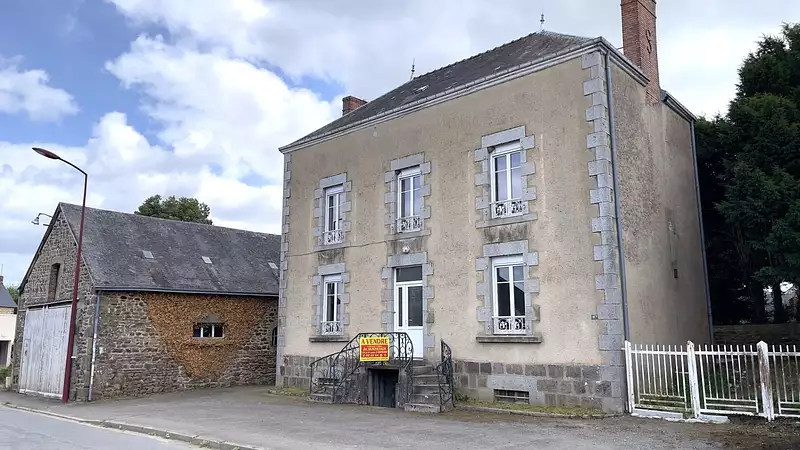 à 5min de MAYENNE, maison de maître du début du XXème construite en pierres d'environ 127m² avec dépendances offrant : Au RDC : Une entrée, un Salon et un séjour sur parquet, une cuisine. Au 1er étage : un palier qui dessert 4 chambres, une salle de bains, un WC. Au 2eme étage : un grenier déjà isolé à finir d'aménager d'environ 45m². Fenêtres en PVC avec volets roulants motorisés. Garage fermé devant la maison. Cave sous la maison avec accès intérieur et extérieur. Terrasse sur l'arrière. + Une dépendance en pierres de 70m² environ avec un grenier au dessus. Le tout sur un terrain paysager d'environ 1215m². Les informations sur les risques auxquels ce bien est exposé sont disponibles sur le site Géorisques : www.georisques.gouv.fr