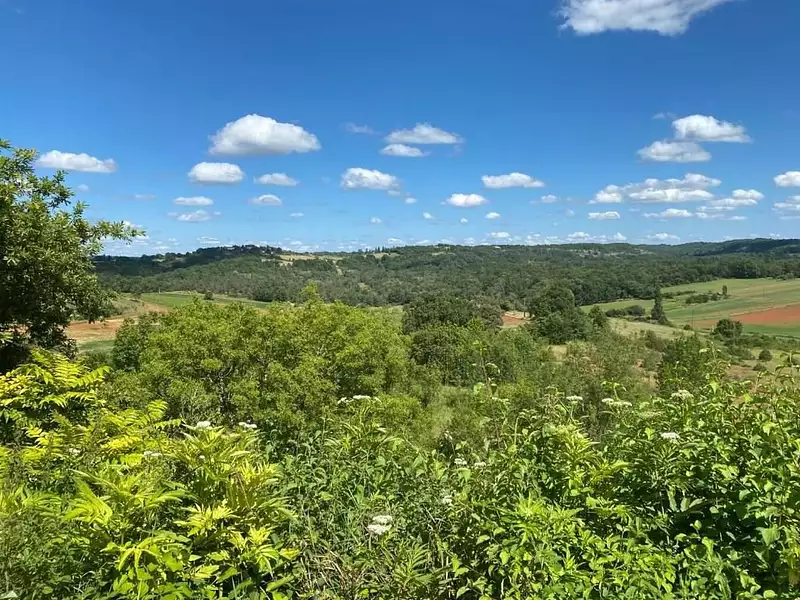Sur les hauteurs, dominant une charmante vallée agrémentée de vignes, de bois et de champs, se trouve ce petit domaine composé d'une maison avec 4 chambres, une piscine, un pigeonnier aménagé, des dépendances et une grande grange sur un terrain de 2 ha. La maison est construite à flanc de colline et domine la vallée. Depuis la grande terrasse ombragée donnant accès à la piscine, vous pourrez profiter pleinement de la vue. À l'intérieur, la salle à manger et le salon offrent également une vue imprenable. De belles pierres naturelles ornent le sol et les murs. Un poêle à bois dans une belle cheminée en pierre vous réchauffera pendant les saisons fraîches, en complément du chauffage par radiateurs à gaz. La cuisine se trouve de l'autre côté de la maison, idéalement située près de la terrasse. Un couloir dessert ensuite 4 chambres attenantes, dont une avec salle d'eau attenante, une salle de bain et des toilettes séparées. À l'extérieur, une belle grange en pierre avec toiture en bon état, des dépendances, un terrain de pétanque et un pigeonnier rénové abritant une chambre et une salle de bain (douche, lavabo, toilettes).