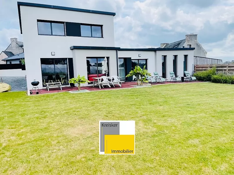 ROSCOFF. Maison de 2020 en parfait état, habitable de plain pieds avec piscine couverte et chauffée accessible par la pièce de vie et sécurisée, construite sur un terrain de 707 m². Composée au RDC d'une pièce de vie avec cuisine ouverte aménagée et équipée donnant sur une terrasse extérieure, une suite parentale avec rangements salle d'eau et WC, un 2ème WC pour visiteurs. A l'étage, 3 chambres et salle de bain et WC. Jardin. Parking. (4.41 % honoraires TTC à la charge de l'acquéreur.)