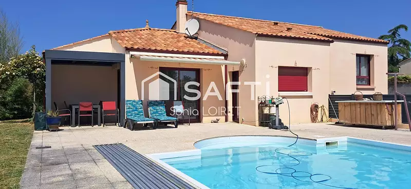 À l'extérieur, la propriété dispose d'une piscine couverte, d'une dépendance et d'espaces verts luxuriants créant une ambiance paisible et accueillante, idéale pour se détendre.