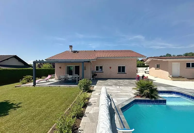 Implantée sur une parcelle de 1 075 m², entièrement close et engazonnée, la maison développe une surface habitable de 128 m² (hors annexes) et bénéficie d'une belle exposition sud-ouest, sans vis-à-vis.