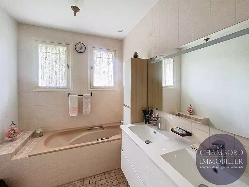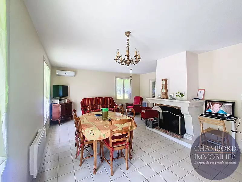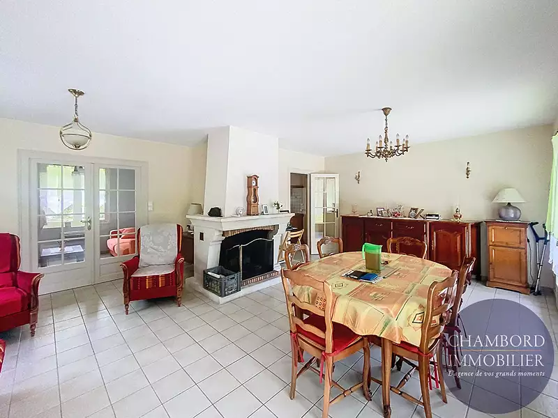Découvrez cette superbe maison à vendre à Cheverny, un véritable havre de paix, située dans un quartier résidentiel prisé, cette propriété est idéale pour ceux cherchant à s'installer dans la région.  Caractéristiques de la maison :  - Surface habitable :128 m² - Terrain : 3736 m² - Chambres : 3 - Pièces de vie :Un vaste et lumineux salon-séjour avec cheminée, ouvert sur une terrasse ensoleillée et clim réversible - Cuisine: Indépendante, aménagée et équipée - Bureaux : 1 - Salle de bains : 1 - Salle de douche : 1 avec WC  - WC : 1 séparé  Double vitrage, climatisation réversible, portail électrique avec visiophone, alarme, jardin clos et arboré, espace pour une éventuelle piscine (sous réserve des réglementations locales), garage double et combles aménageables.   A seulement quelques minutes du centre de Cheverny, du château et du Golf cette maison offre un cadre de vie paisible tout en étant proche des commodités. Le vaste jardin est un véritable atout pour les amateurs de plein air et de détente.  Chambord Immobilier Blois votre partenaire privilégié pour trouver la maison répondant à vos critères à Cheverny  (2.13 % honoraires TTC à la charge de l'acquéreur.)Afficher plus