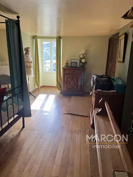 Secteur FELLETIN. Réf: 88670. Une maison comprenant en rez-de-chaussée: cuisine équipée (éléments hauts et bas , frigo, lave vaisselle, four, hotte, poêle Godin de 12KW), salon (insert), douche-wc, cave voûtée. 1er étage: deux chambres (dont une avec baignoire balnéo et wc). 2ème étage: une chambre mansardée avec salle d'eau-wc. Panneau photovoltaïques. Dépendance attenante. Garage. Remise. Terrain attenant et non attenant de 4710 m².