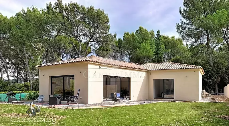 Situé dans un domaine fermé et sécurisé au coeur d' un écrin de verdure, Villa neuve de 2025 3 chambres toute entièrement neuve en cours de finition offrant une surface de 128 m2 s/terrain 1067 m2 arboré piscinable, terrasse très ensoleillée. Elle se compose d'une entrée, vaste salon cuisine américaine neuve et entièrement équipée 52 m2 exposée sud/ouest, 3 belles chambres, 2 salles de douche wc, grande buanderie. Point de vue prestations, sa construction très récente vous permettra de vous offrir toutes les dernières normes comme RE 2020, climatisation réversible, alarme, adoucisseur.