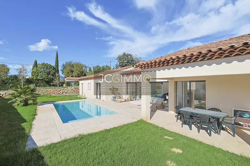 EXCLUSIVITÉ JCG IMMO : sur la commune de Pierrefeu-du-Var, retrouvez cette villa indépendante contemporaine, construite en 2021, d'une surface de 128 m2 habitables T5 avec garage sur un terrain de 890 m2.