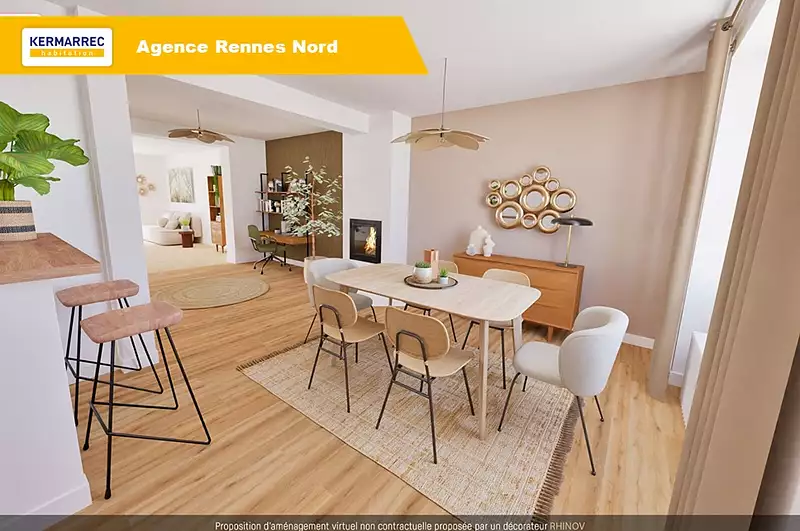 KERMARREC Habitation est fier de vous présenter, en plein coeur du quartier Jeanne d'Arc, cette maison alliant le charme de l'ancien avec sa partie des années 30 rénovée et le confort des constructions récentes avec sa belle extension. Au 1er niveau, l'entrée dessert une cuisine aménagée et équipée ouverte sur le reste de la grande pièce de vie. La partie salon lumineuse permet un accès à une agréable terrasse exposée Sud-Ouest, avec vue sur le jardin. Un WC avec lave-mains se trouve également à ce niveau. A l'étage, les 3 chambres spacieuses dont 2 avec placard peuvent aisément accueillir votre famille. Une salle d'eau avec WC complètent ce niveau. Au semi sous-sol, vous trouverez un grand espace cave-buanderie de plus de 40m2, et un double garage avec sa porte électrique. Le tout se trouve sur une parcelle verdoyante de 588 m2. Un bien rare à visiter sans tarder ! Contactez vite votre agence de proximité au 02 99 27 00 00. Très bon DPE : C Ref. 22582 Prix FAI : 766 500 euros dont 5.00 % honoraires TTC à la charge de l'acquéreur.
