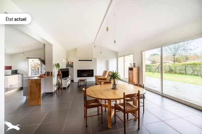 A Saint Selve, sur une parcelle de plus de 1100m², au calme et proche centre. Maison récente basse consommation aux jolies prestations. Entrée avec rangements, grand salon cathédrale exposé sud, cuisine semi ouverte équipée, cellier, une suite parentale avec salle d'eau, un coin enfants avec deux chambres et salle de bain, bureau. Proposition d'aménagement virtuel non contractuelle en dernière photo.