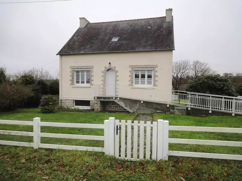 SPEZET : maison d'habitation comprenant au RDC : entrée, cuisine aménagée & équipée ouverte sur salon avec poêle à pellets (d'avril 2010), chambre (ou salle a manger), chambre, salle d'eau avec douche italienne, WC; à l'étage : palier, 4 chambres, pièce/placard (possibilité salle d'eau). Au sous-sol : cave et buanderie. En dépendance : garage 2 voitures avec électricité. Terrain d'environ 1 500m².