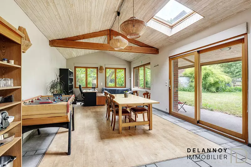 L'agence DELANNOY Immobilier vous présente en exclusivité une maison semi-individuelle de 128,22 m² habitables (150 m² au sol ) idéale pour une vie de famille dans un cadre à la fois pratique et verdoyant.