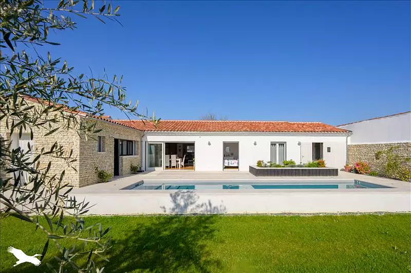 Au coeur du village côtier d'Esnandes, superbe maison style réthais entièrement rénovée, alliant charme et modernité. Trois chambres (possibilité d'en faire une 4ème facilement), belles prestations, jardin intime et sans vis à vis avec piscine.