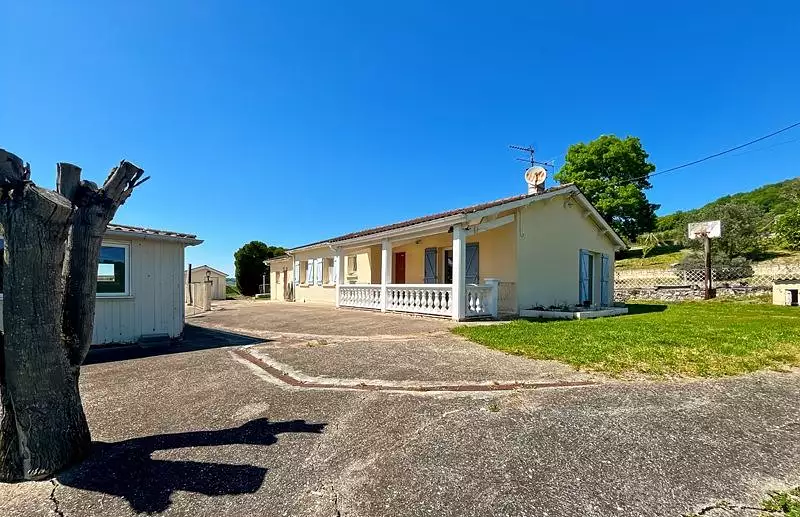 Idéalement située sur un site dominant avec de belles vues sur la campagne environnante, à quelques minutes de LECTOURE, maison individuelle de près de 120 m² habitable de plain pied. Séjour avec cheminée insert, cuisine ouverte, 4 chambres, bureau, salle de bains, douche, 2 WC, double garage de 45 m², piscine (traitée au sel, l'électrolyseur, le liner et la pompe ont été changés en Aout 2023), grande terrasse extérieure avec constructions légères démontables si souhaité, terrain clos de plus de 2500 m²