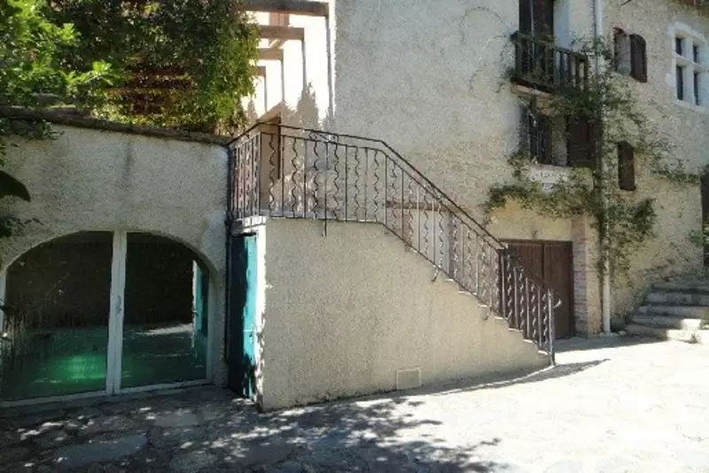 Au premier étage, se trouvent une grande terrasse ombragée de 26 m2 exposée plein sud donnant accès à la cuisine ouverte équipée et aménagée/ salle à manger de 26 m2 avec cheminée, et une cave voutée de 19 m2, avec un WC indépendant, pouvant servir de salon ou de chambre supplémentaire avec sa petite terrasse.