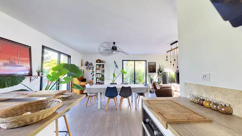 Le séjour est bordé par une terrasse de plus de 100m2 sur une parcelle d'environs 520m². Un garage attenant à la maison menant à la buanderie vient complété ce bien. Contactez nous pour obtenir plus d'information ou organiser une visite.
