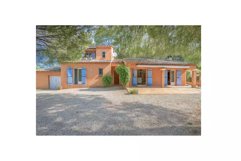 Située en position dominante, belle villa de 130 m² environ en parfait état, exposée plein sud, avec vue sur la campagne et les montagnes.