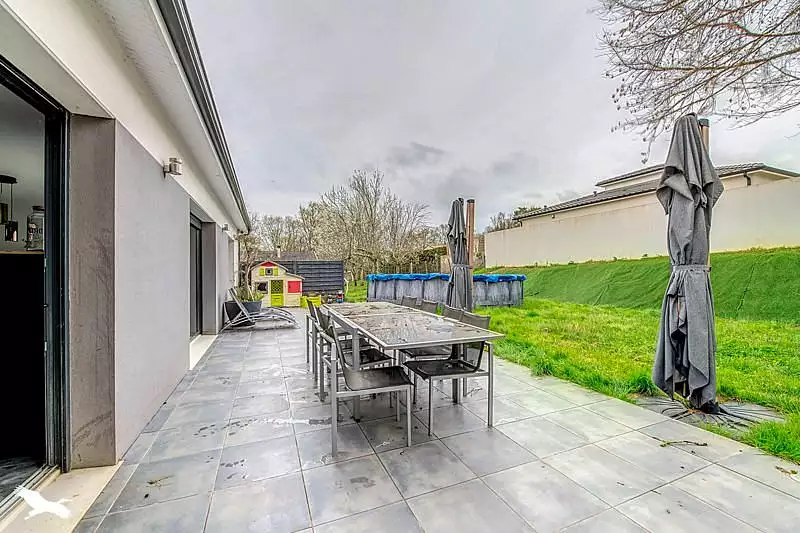 Environnement campagne et calme pour cette contemporaine à 5 minutes de Fargues et ses commerces. De plain pied, elle propose un beau séjour av ec une cuisine ouverte équipée et un cellier ouvrant sur le garage. Dans le coin nuit, trois chambres et une salle de bains complète. Jardin autour de plus de 900m².