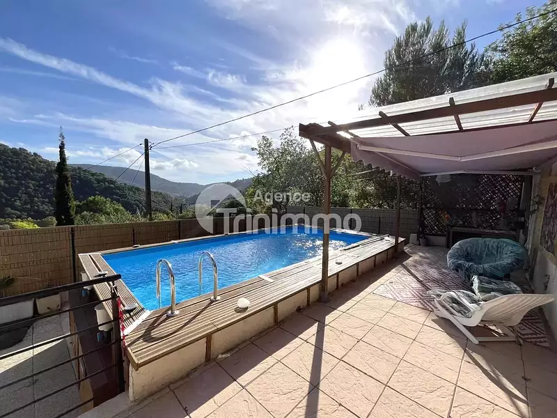 CANTARON! Maison 4-5 pièces d'environ 110m², mitoyenne par un côté, dans un environnement calme et ensoleillé avec vue dégagée, composée au rez-de-chaussée d'un grand salon d'environ 40m² avec poêle à bois, donnant sur une véranda de 22m², cuisine indépendante avec cellier, un wc. A l'étage: 3 chambres, un bureau avec mezzanine, terrasse, salle de bains avec wc. Terrasse, jardin, piscine hors-sol. Plusieurs places de parkings dans la propriété. Sur une parcelle de terrain d'environ 600m². Idéal famille !