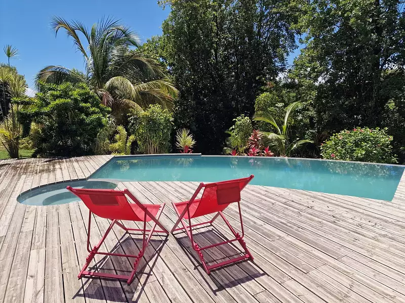 Idéalement située entre Capesterre et Grand Bourg à 500 m de la plage de Petite anse. Au niveau principal donnant sur le deck et la piscine: 2 chambres, 2 salles de bains, une mezzanine, la cuisine, le cellier et le salon avec terrasse. Au niveau jardin une chambre supplémentaire avec salle de bains et un garage fermé. Terrain clôturé de 877 m² . Bien actuellement en location saisonnière. Les informations sur les risques auxquels ce bien est exposé sont disponibles sur le site Géorisques : www.georisques.gouv.fr