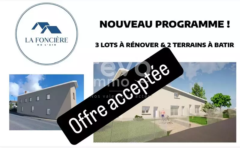 L'agence REVO IMMO de Mionnay, vous propose sur la commune de Civireux en Dombes. Maison de village hors d'eau hors d'air, d'une superficie d'environ 130m² dans l'hypercentre du village. Proche toute commoditée, école, commerce... Tout peut se faire à pied. Le lot sera vendu avec une parcelle de 52m² de terrain privatif, 2 places de parking. Toiture, façade et menuiserie seront éffectuer. Venez aménager l'interieur comme vous le sentez. Je reste disponible pour tout complément d'information. SAS REVO IMMO - VETTRAINO Cyril EI - 07 52 63 72 83 - Plus d'informations sur (réf. 4901050510). Agent commercial RSAC BOURG-EN-BRESSE 898 658 935 - Prix TTC et Honoraires à charge vendeur TTC - Les informations sur les risques auxquels ce bien est exposé sont disponibles sur le site Géorisques : https://www.georisques.gouv.fr/.