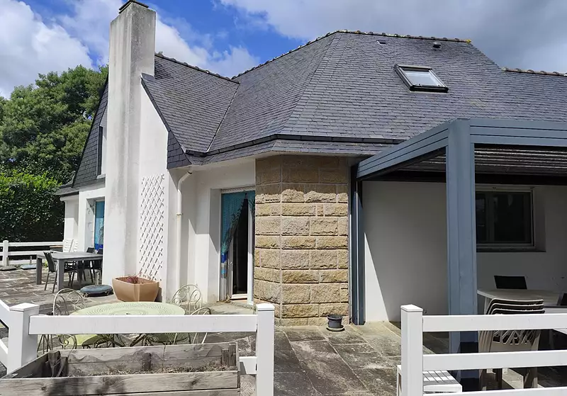 Dans un quartier prisé pour sa proximité immédiate du port et des rives de l'Odet, au coeur d'un environnement calme et boisé, cette maison contemporaine construite en 2000 offre un cadre de vie aussi paisible que fonctionnel. D'une surface habitable d'environ 130 m², édifiée sur une parcelle de 855 m², cette maison non mitoyenne, orientée plein sud, séduit par ses volumes, sa luminosité et la qualité de son agencement. La maison propose une véritable vie de plain-pied, avec au rez-de-chaussée un hall d'entrée avec dégagement, un vaste séjour lumineux doté d'une baie vitrée, ouvert sur une cuisine aménagée et équipée, une chambre, une salle de bain et un WC indépendant. Une cuisine d'été attenante à une véranda bioclimatique complète le rez-de-chaussée : cet espace, pensé pour la détente, peut facilement être transformé en garage selon vos besoins. A l'étage, vous découvrirez deux grandes chambres supplémentaires, une salle d'eau, un second WC, ainsi qu'un grenier aménageable, parfait pour créer une quatrième chambre, un bureau ou un espace loisirs. Le tout est implanté sur un joli jardin clos et arboré, exposé plein sud, offrant un bel espace extérieur à vivre. Contactez-nous pour organiser une visite ! Vous avez un projet immobilier ? contactez votre Agence Littoral Ouest Immobilier 23 rue de l'Odet 29120 COMBRIT-SAINTE-MARINE au 02 98 87 12 78. Les informations sur les risques auxquels ce bien est exposé sont disponibles sur le site www.georisques.gouv.fr (5.00 % honoraires TTC à la charge de l'acquéreur.)