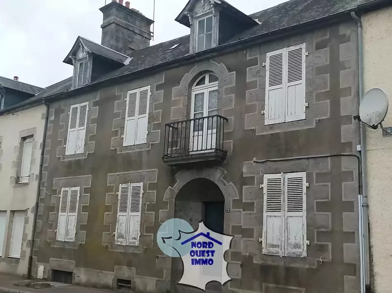 Grande maison de ville à restaurer, avec jardin à l'arrière. Ce bien se compose d'une entrée qui dessert : une cuisine, un séjour ( (21.88 m2) avec cheminée, une bibliothèque de 11 m2 avec cheminée également. A l'étage 4 chambres de 10 à 15 m2, une salle de bains, un grenier. Jardin sur l'arrière de la maison jusqu'à la rivière. Une cave sur toute la surface.