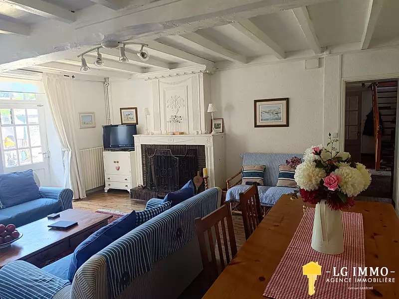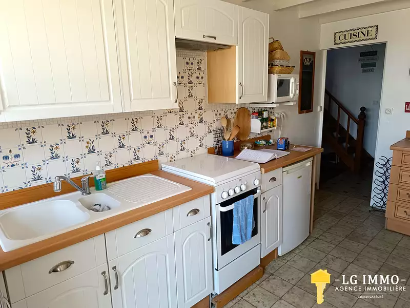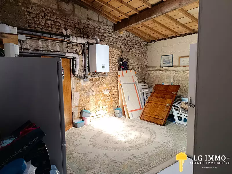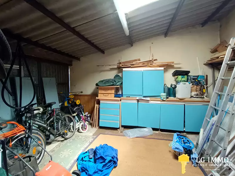 - LG IMMO - Cabinet GARÉCHÉ vous propose cette maison mitoyenne d'environ 130 m2 habitable comprenant au rez-de-chaussée, une cuisine aménagée de 14,20 m2, un salon/séjour de 33 m2 avec cheminée/insert, une salle d'eau de 4 m2, un Wc de 2,30 m2 avec lave main, une buanderie de 5 m2, un dégagement de 10,40 m2, une pièce atelier/chaufferie de 25 m2, une pièce de 11,70 m2 pouvant servir de chambre au rdc, un garage de 18 m2 et un cellier de 17,40 m2.