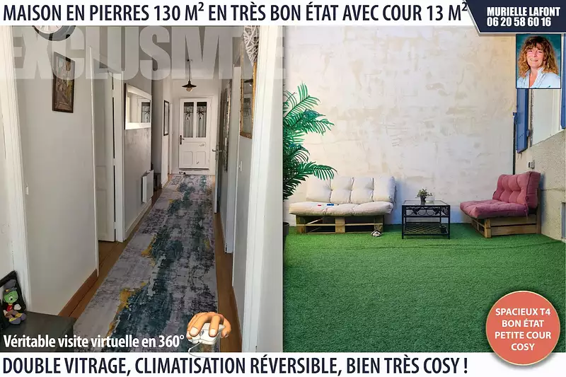 Contact : Murielle Lafont au 06 20 58 60 16. Prix : 140 000 €, rémunération du mandataire à la charge du vendeur. La présente annonce immobilière a été rédigée sous la responsabilité éditoriale de Mme Murielle Lafont, Agent Commercial mandataire en immobilier immatriculé au Registre Spécial des Agents Commerciaux (RSAC) du Tribunal de Commerce de Carcassonne sous le numéro 390 533 123..