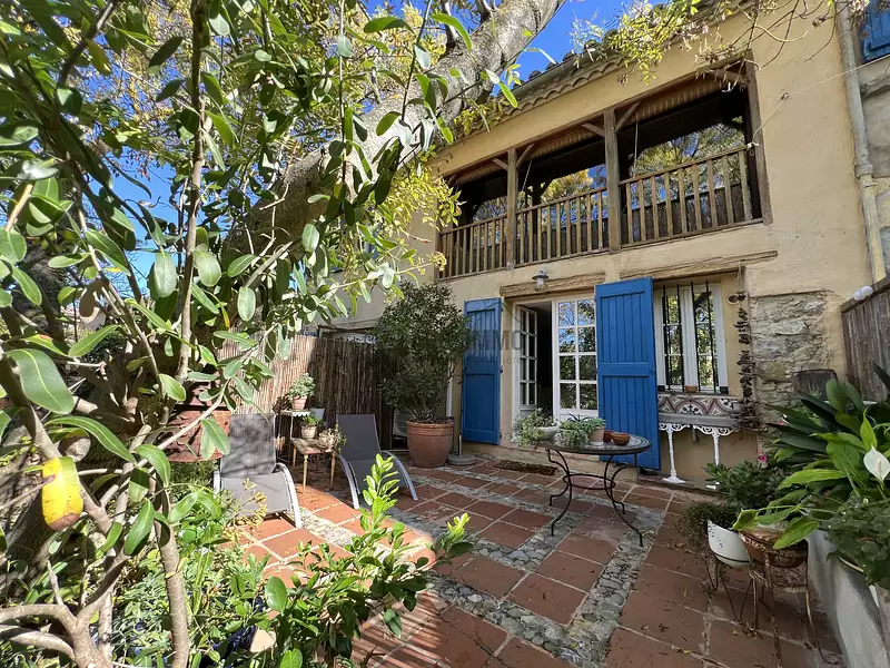 Maison de charme avec jardin arboré et accés à la rivière constituée de 2 habitations dont une en rez de jardin avec vue sur l'Abbaye de Lagrasse.
