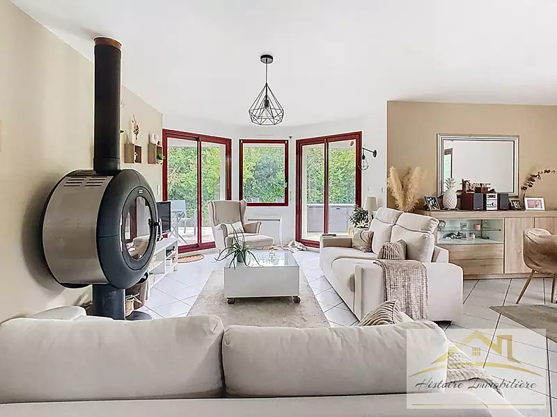 LA FOREST LANDERNEAU, cette maison, située au calme , sans vis à vis, est une contemporaine de 2010 construite avec des matériaux de qualité. Permettant une vie de plain pied, vous entrez dans un hall qui dessert une vaste pièce de vie baignée de lumière grace à son exposition sud ouest, avec un poêle à bois, ouverte sur la cuisine aménagée et équipée (45m2 le tout) donnant sur des baies vitrées et une grande terrasse faisant le tour de la maison. Vous disposez également au rez de chaussée de deux chambres aux volumes généreux (13,30 et 11,28m2) , d'une salle de bains et d'un cellier. A l'étage se trouvent deux autres chambres, et une salle d'eau. Le vaste garage de 34m2 fera le bonheur des bricoleurs. Ses points forts, sont la luminosité, l'exposition, ses beaux volumes ainsi que la vie de plain pied qui en font ses meilleurs atouts sans oublier l'absence de vis à vis. REF : GL302. (5.00 % honoraires TTC à la charge de l'acquéreur.) Gérard LENAVETIER (EI) Agent Commercial - Numéro RSAC : 443716873 - BREST.